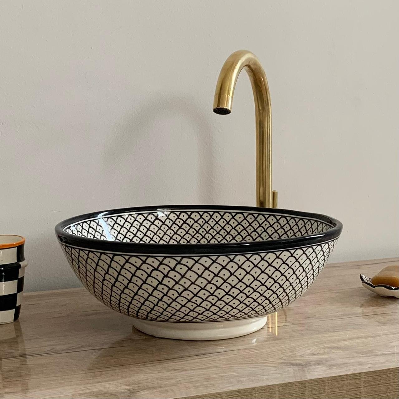 Moroccan ceramic sinks are known for their vibrant colours, intricate patterns, and craftsmanship. The materials commonly used in making these sinks include: